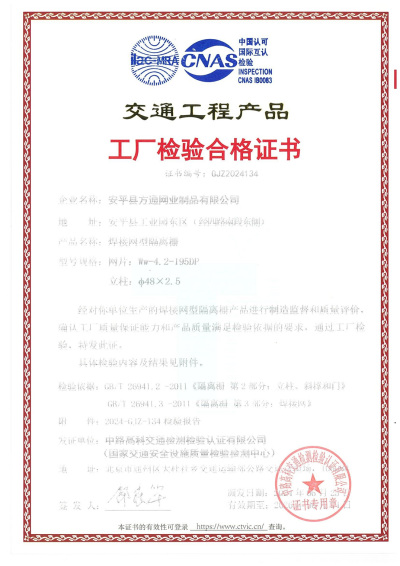 安平縣方通網業制品有限公司專業生產高速公路護欄網、鐵路護欄網、高速公路隔離柵,本廠是交通部公路護欄網、鐵路隔離柵定點生產廠家,熱線電話:0318-7685666。